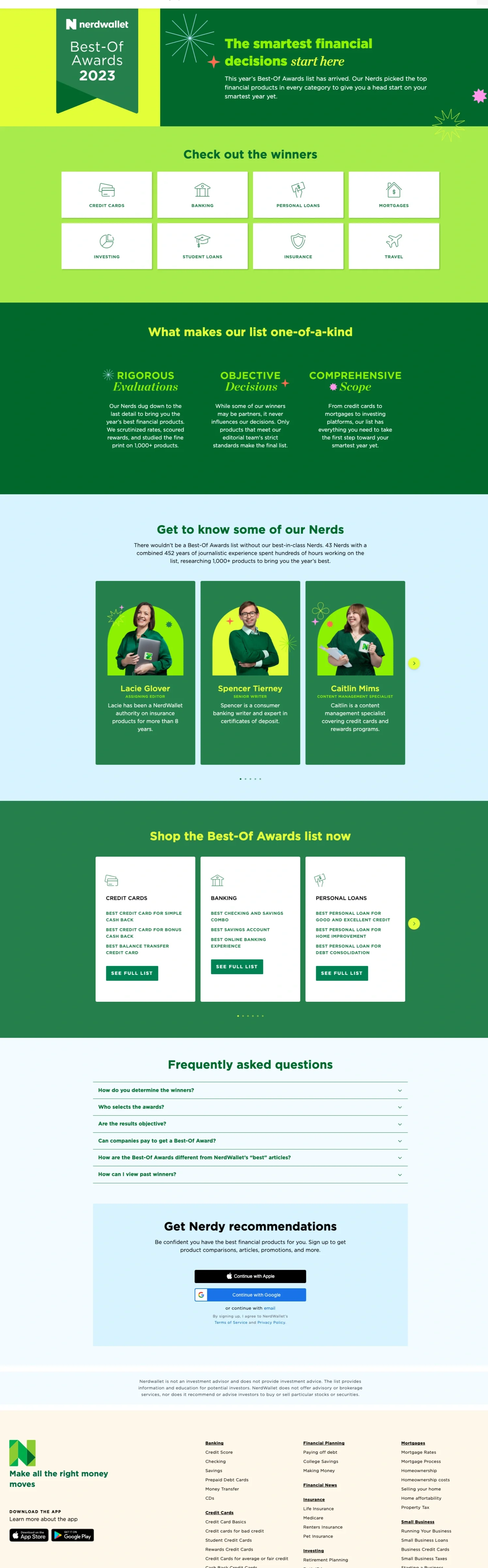 Each year we promote our best financial products of the year. Each year we learn what works best, what can be better, and optimize to create the best experience possible. In 2024, we beat each previous iteration, focusing on the Nerds and their unbiased approach to bringing you the best financial products of the year.