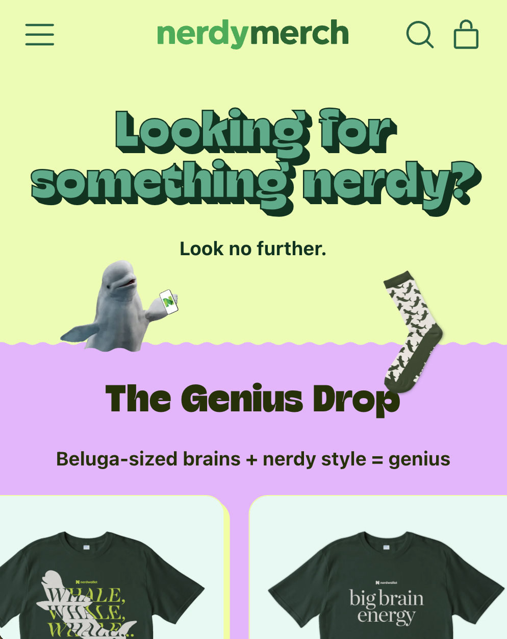 We designed the look, feel, and all the super fun words for our merch landing page and all of our swag, making sure to capture the tone, voice and Beluga spirit of our Super Bowl commercial.